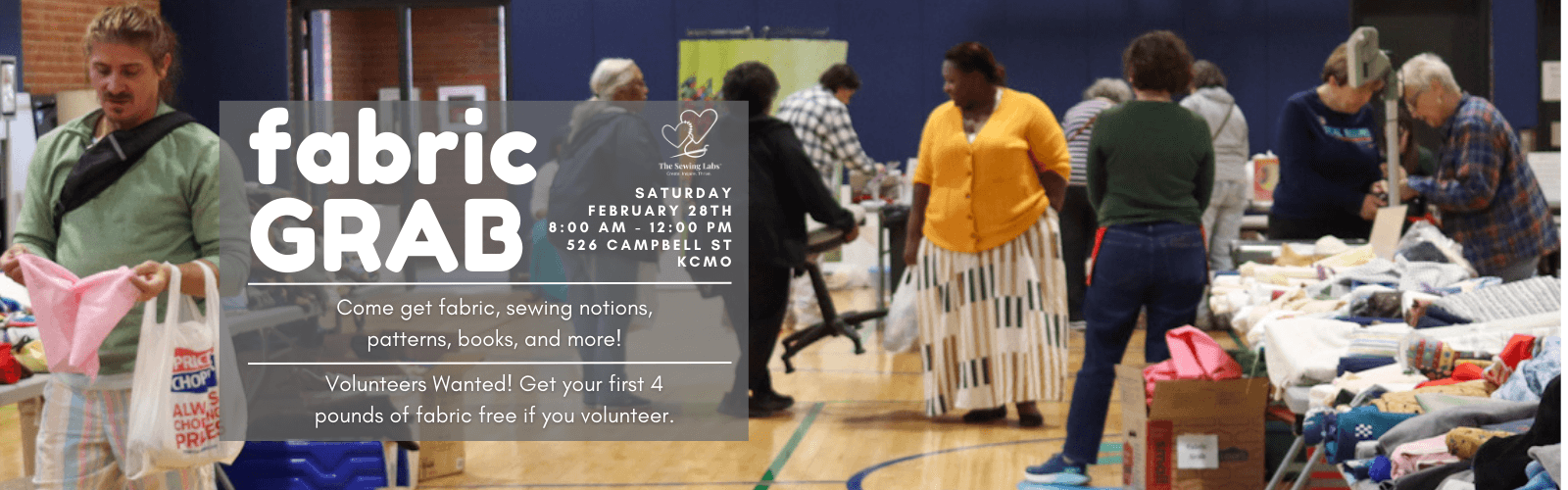 Interested in volunteering at Fabric Grab? Volunteers get their first 4 pounds of fabric free!